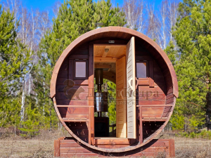 Банная конструкция в виде бочки стала популярной не так давно, но уже за такое короткое время успела завоевать к себе симпатию по всему миру. Баню-бочку можно установить на небольшом участке, а при желании потом ее перевезти, если возникла такая необходимость. Или взять такую круглую парилку с собой на рыбалку, охоту, в лес, чтобы отдых был полезным и комфортным. Круглую парилку можно использовать не только по прямому назначению, но и в качестве летней кухни или кемпинг-домика.