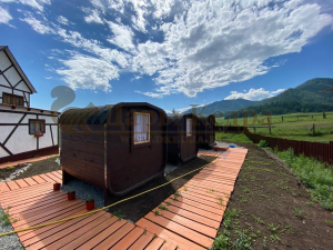 Данная опция позволяет доставить баню в труднодоступные места, куда выгрузка в собранном виде невозможна. Комплект для сборки обязательно полностью собирается на производстве, во избежание любых, даже малейших несостыковок, затем разбирается и нумеруется каждая деталь. Процесс сборки бани занимает примерно 1-2 дня, силами 2-3 человек (в зависимости от размера бани).