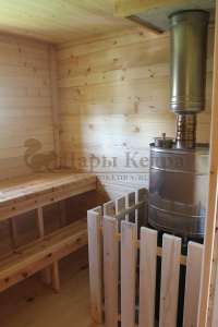 Забор из кедра вокруг печи, это в первую очередь безопасность от случайных ожогов, а также красивый эстетический вид.