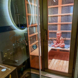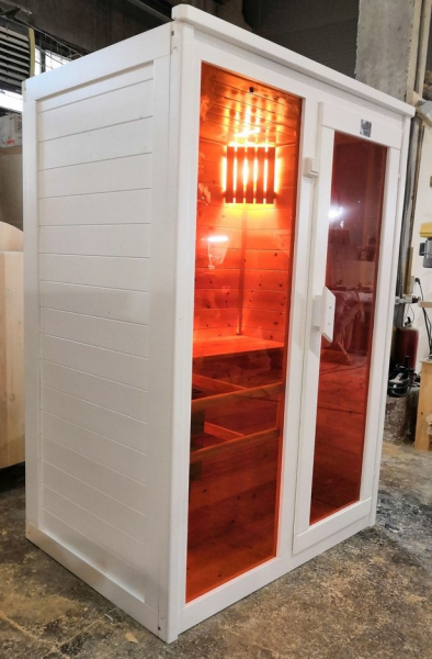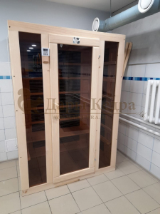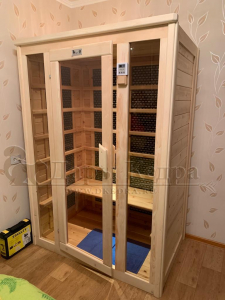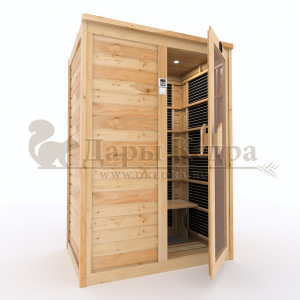 Это специально оборудованная кедровая кабина для прогрева тела человека сухим теплом. Воздух в таких парных не нагревается. Инфракрасные лучи воздействуют на тело, равномерно прогревая мышцы, суставы и органы. Карбоновые излучатели, встроенные в стены кабины, обладают мягким прогревом, что полностью исключает возможность ожога. Работает кабина за счет электричества. Двухместная инфракрасная сауна с карбоновыми излучателями подойдет как для домашнего использования, так и для коммерции.
