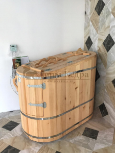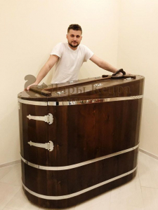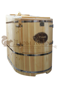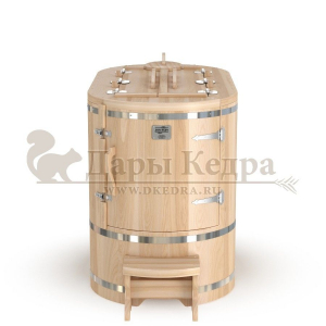 Кедровая фитобочка полулежачая - это мини парная, которую можно использовать не только в спа-салонах, но и дома. Модель этой бочки наиболее комфортна, так как позволяет принимать процедуры полулежа. Толщина стенок составляет 25 мм. Фитобочка оборудована откидными створками, дверцей и отверстием для головы. Во время парения человек находится внутри кедровой бочки, а голова снаружи. Благодаря этому исключается возможность перегрева. Подлокотники, подспинник из кедра и внутренние ручки делают эксплуатацию фитобочки более удобной.