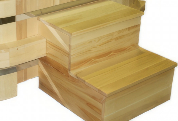 Небольшой подиум из кедра с двумя ступенями, отлично подойдет для купелей и ванн небольшой высоты - 1000 мм.