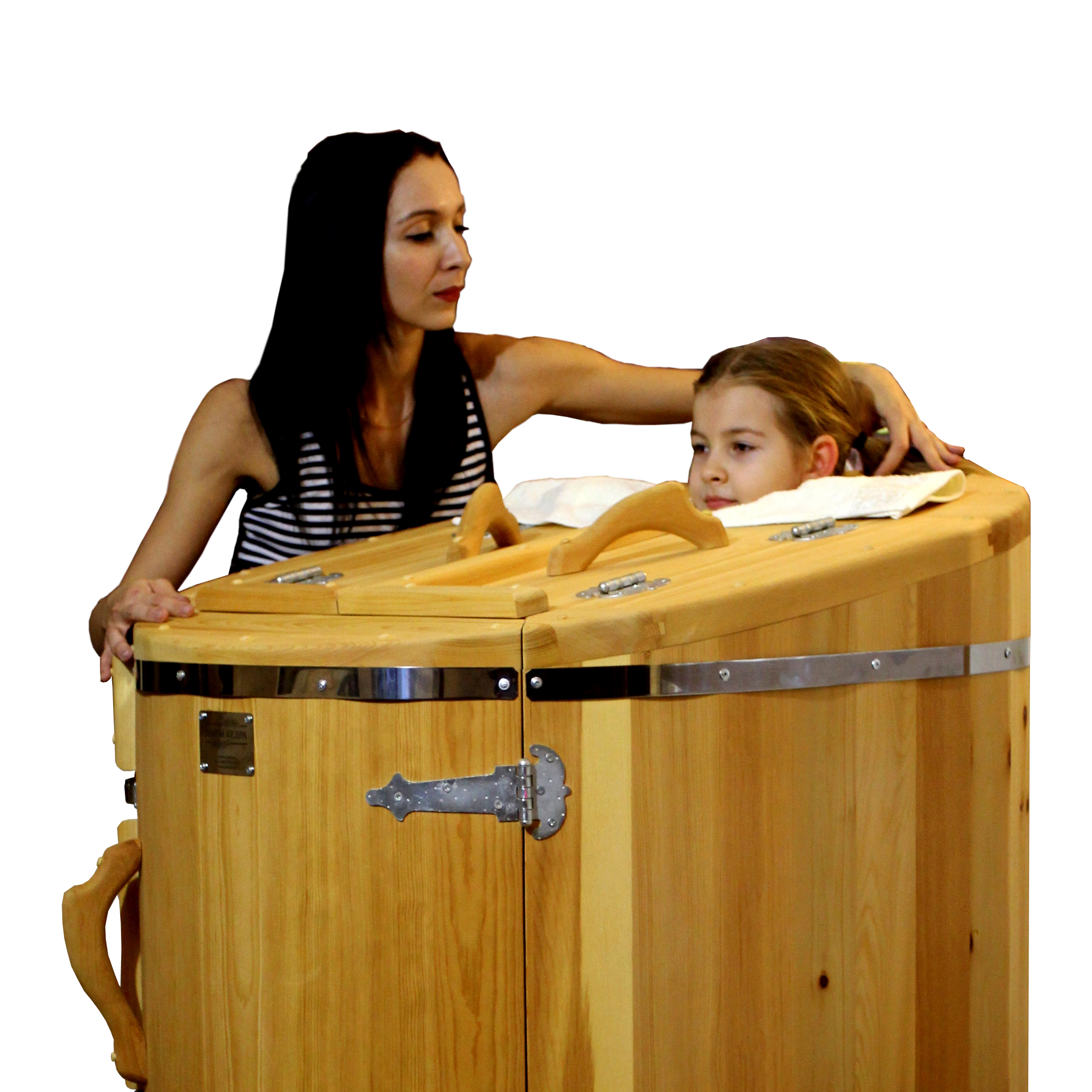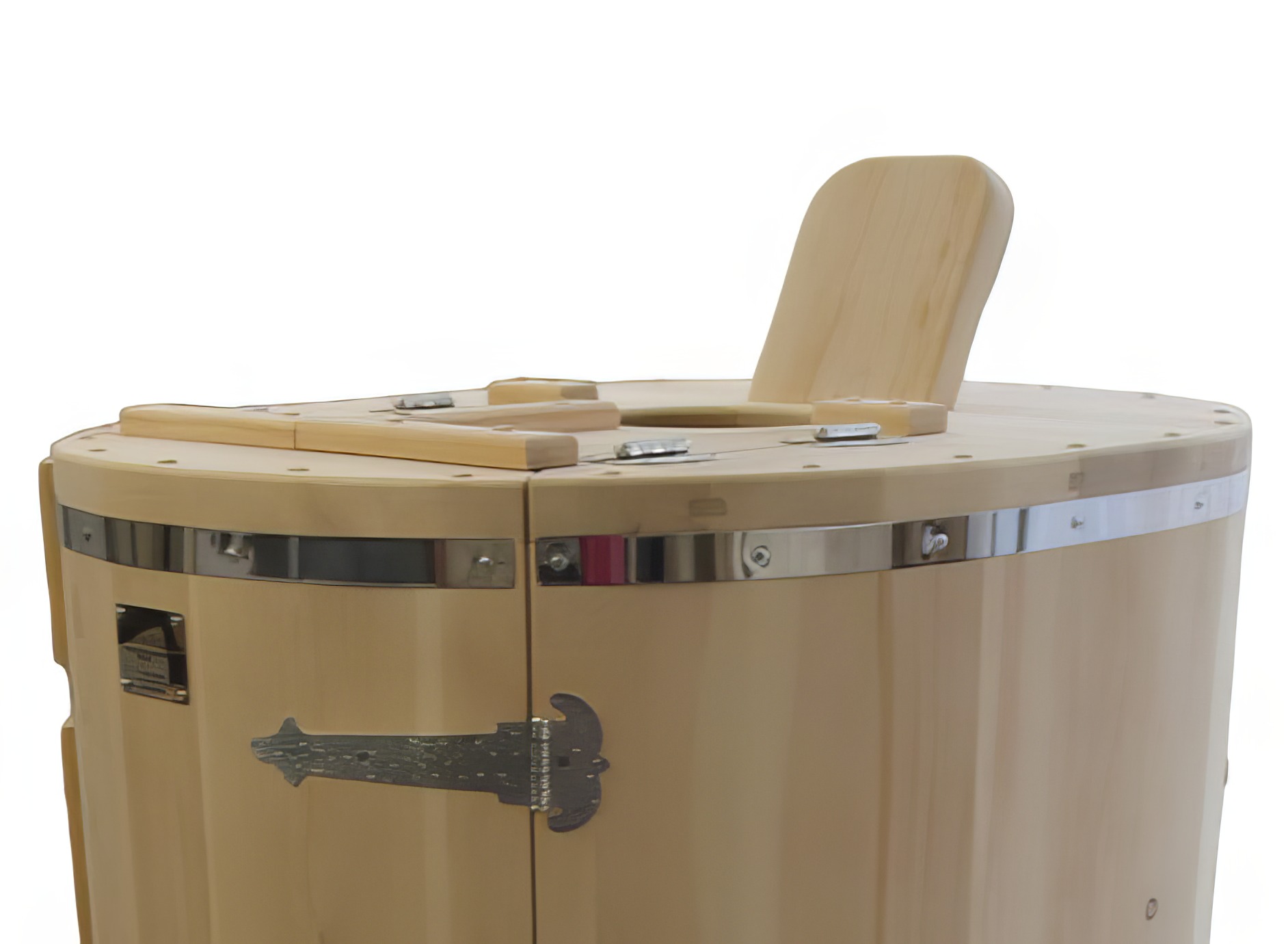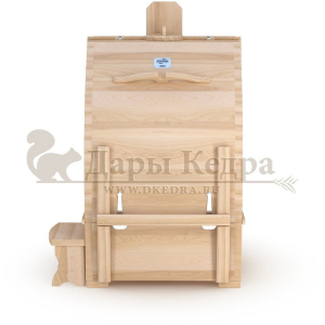 Квадратная двухрежимная фитобочка из кедра может быть использована как инфракрасная сауна и парная. Карбоновые излучатели отвечают за сухое парение, они находятся на внутренней стороне дверцы и задней стенке фитобочки. Влажное парение происходит за счет поступления горячего пара в фитобочку через паропровод. Толщина стенок составляет 40-45 мм, что позволяет увеличить срок службы изделия. Откидная дверь бочки во время открывания фиксируется внешней подставкой - опорой, которая в закрытом состоянии складывается и не занимает лишнее пространство. Во время парения человек сидит внутри кедровой бочки, а голова находится снаружи. Благодаря этому исключается возможность перегрева. Встроенная ручка на двери делают эксплуатацию фитобочки более удобной.