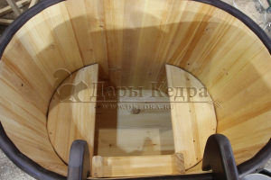 Это герметичная емкость для воды из кедра, которая используется для отдыха и охлаждения тела после процедур парения. Купель оснащена лавочками, приставной и внутренней лестницей из кедра. За счет стяжных болтов обручи из нержавеющей стали плотно прилегают к кедровой купели. Это позволяет равномерно распределять нагрузку воды и сохранить форму изделия в период эксплуатации. При правильном уходе купель для бани не рассыхается и не подвергается гниению. Овальная купель подходит для уличного и комнатного использования.