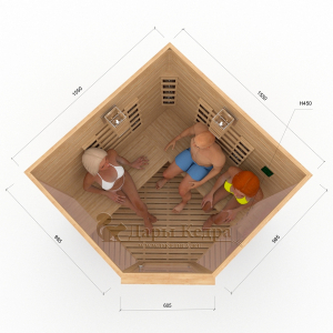 Это специально оборудованная кедровая кабина для прогрева тела человека сухим теплом. Воздух в таких парных не нагревается. Инфракрасные лучи воздействуют на тело, равномерно прогревая мышцы, суставы и органы. Керамические излучатели похожи на лампы, имеют высокую температуру нагрева, поэтому защищены противоожоговыми решетками. Тело человека в таких саунах нагревается интенсивнее. Работает кабина за счет электричества. Установка сауны в угол, позволяет рационально использовать пространство помещения. Подходит как для домашнего использования, так и для коммерции.