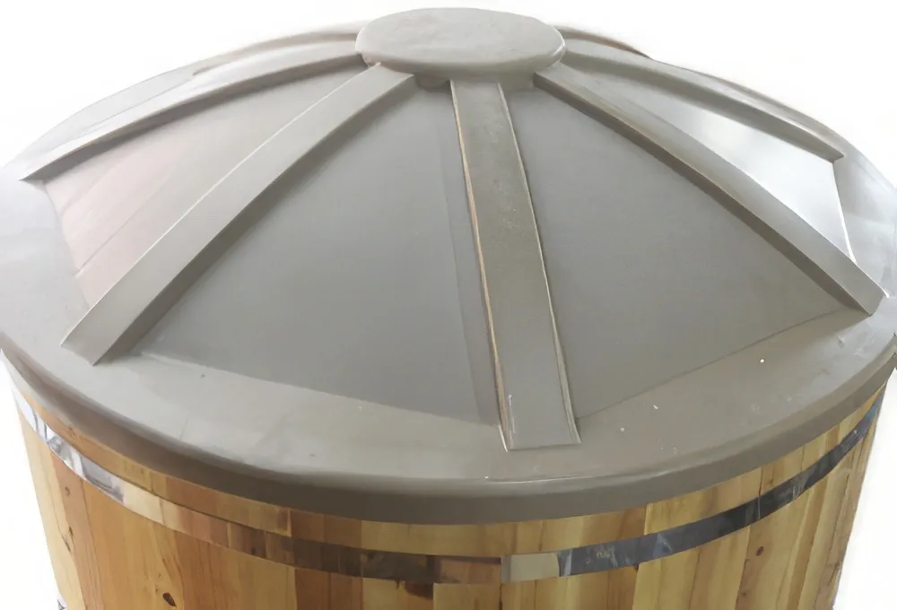 Это уличная подогреваемая купель с круглой внутренней чашей из термопластика, которая имеет цельную форму вместе с сиденьями и дном. Для удобства пользования купель фурако оборудована приставной лестницей. Подогрев воды осуществляется за счет внешней печи с дымоходом. Термопластик устойчив к воздействию температур, облегчает уход за фурако и увеличивает срок ее службы.