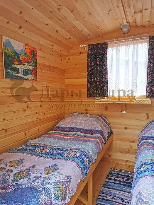 Оригинальное строение в виде бани-бочки, казалось бы, вообще не вариант для обустройства под дом. Но покажем наглядно, какими элементами можно дополнить раздевалку, чтобы баня в виде вагончика функционалом ничем не отличалась от летнего домика. Откидные столики, полочки, коврики, лежанки, зеркала и многое другое создадут уют, стены из кедра добавят тепла и оригинального древесного аромата. Кроме того, если парная выполнена в форме буханки, тут открываются необъятные просторы для дизайна и зонирования комнат для отдыха, спа-процедур. Ведь сама по себе такая форма бани предполагает увеличение пространства за счет ровного пола и увеличенной высоты потолков до 2,3 метра. На примерах уже завершенных проектов можно почерпнуть для себя идеи, добавить что-то свое и получится вполне оригинальный, комфортный дом для проживания летом. Если конструкцию утеплить на стадии строительства, то в таком домике можно проводить даже зимние вечера. Также стоит отметить, что такой дом-баня из кедра отличается не только функционалом, но и своей пользой за счет лечебной древесины кедра.